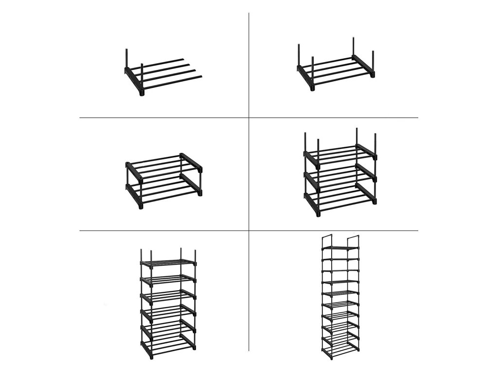 Čím jednoduchšie, tým lepšie! Kovové rúrky stačí vložiť do plastových konektorov, nie je potrebné žiadne náradie! Šľapky, tenisky, vysoké podpätky, sandále alebo balerínky si potom môžete uložiť do svojho nového botníku.