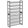 Kovový botník, stojan na topánky, veľký regál na topánky, stojacie police, úspora miesta, multifunkčná, šedá.
