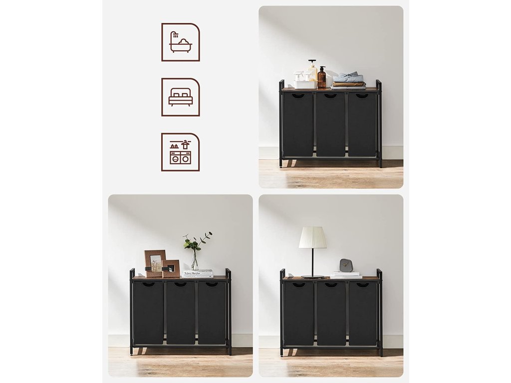 Kôš na bielizeň Keeley, Rustikálna hnedá Kôš na bielizeň, 3 odnímateľné vrecká z tkaniny Oxford, kovový rám, vintage hnedá - čierna.