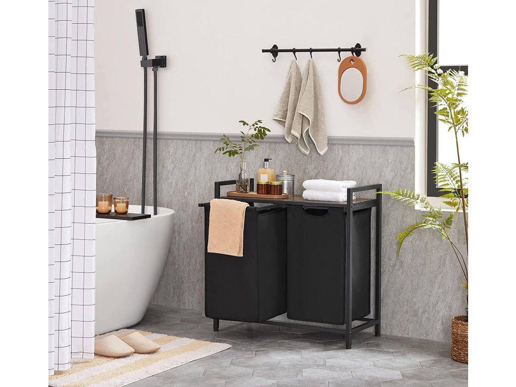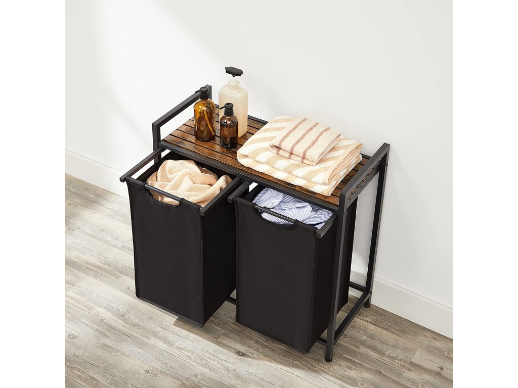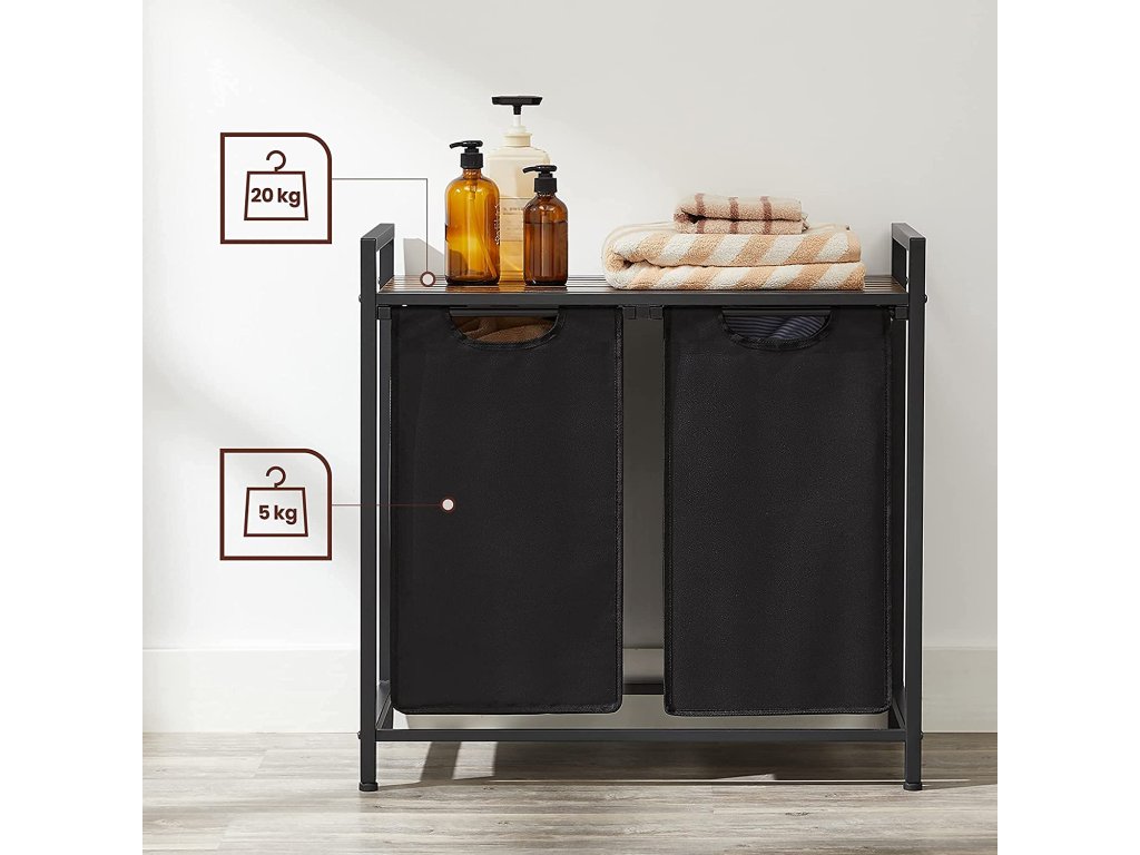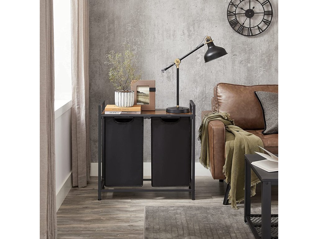 Kôš na bielizeň Key, hnedá / čierna Kôš na bielizeň, 2 odnímateľné vrecká z tkaniny Oxford, kovový rám, 2 x 46 litrov, 73 x 33 x 72 cm, vintage hnedá - čierna.