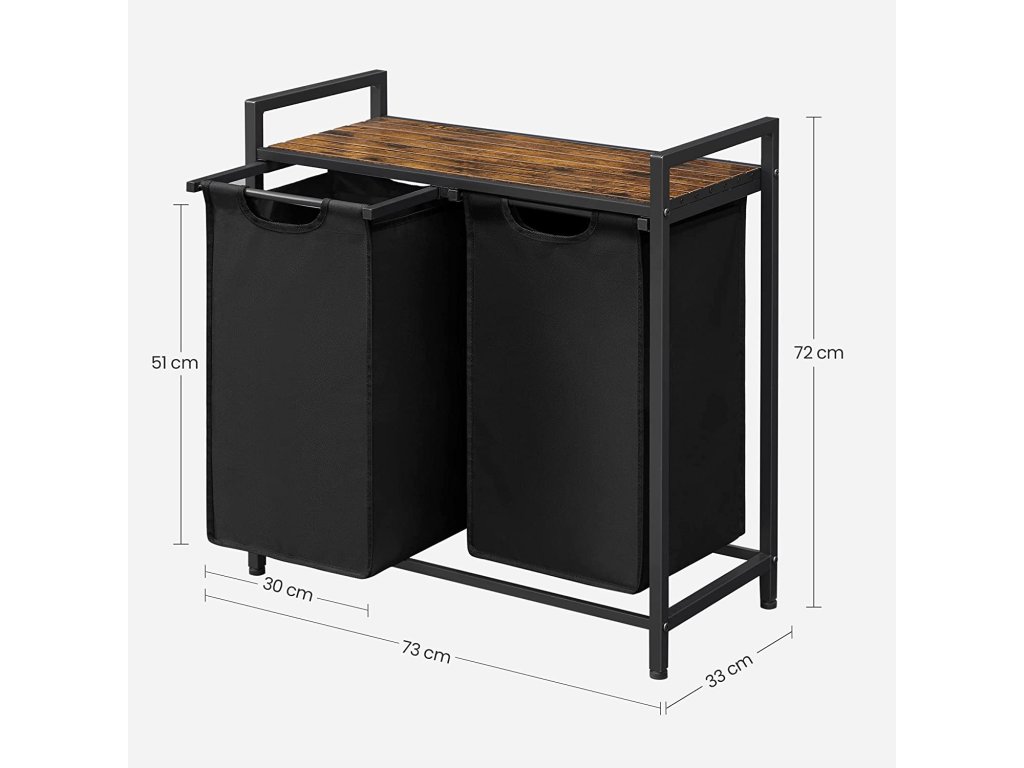 Jednoducho výsuvné a odnímateľné vrecia na bielizeň: 2 priehradky sú dole podopreté plastovou doskou, aby sa zabránilo preveseniu, možno ich jednoducho vytiahnuť a vďaka suchým zipsom zložiť a prať v práčke