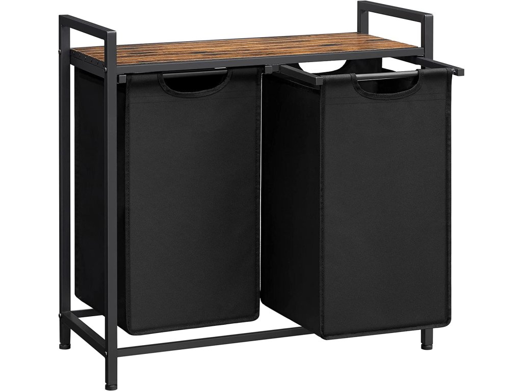Skladujte triedenú bielizeň: Tento kôš na bielizeň má dve vrecká z tkaniny Oxford, ktoré vám pomôžu skladovať posteľnú bielizeň a odevy oddelene alebo triediť bielizeň podľa farieb.