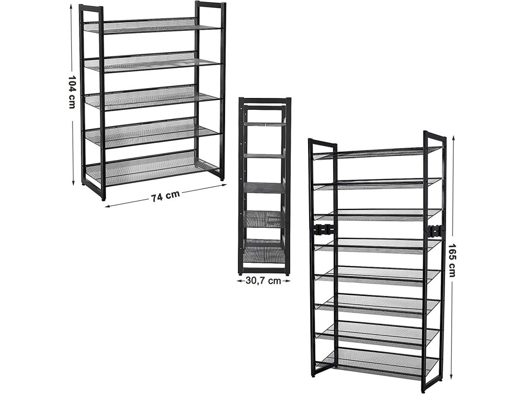Rozšíriteľný botník – rozšírte tento Kovový botník Tam, čierna s 5 poličkami o ďalšie 3 police s Kovovým botníkom Tamara, čierna.