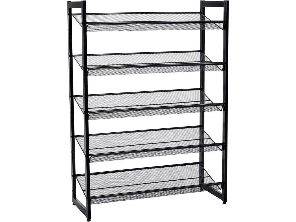 Kovový botník Tam, čierna Botník s poličkami z kovovej mriežky, nastaviteľný botník, regál na topánky, čierna.