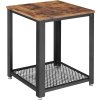 Odkladací stolík vo vintage industriálnom dizajne, nočný stolík, stolík k pohovke s mriežkovou priehradkou, stabilný, s kovovou konštrukciou, do izby